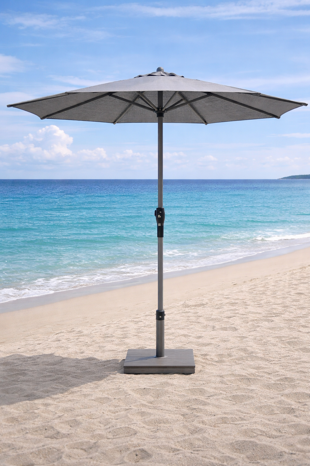 SOLIS PARASOL DELUXE ROND 10′ + ÉVENT D’AIR (ASPECT BOIS/GRIS)