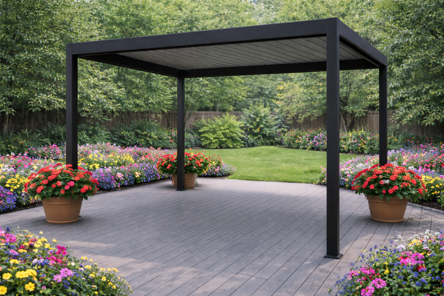 Pergola Casilda à lames orientables, 3 x 4 mètres, avec poteaux carrés en aluminium 10' X 13' et gouttière